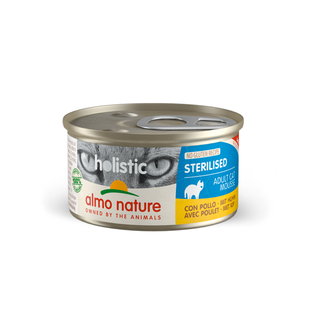 Caractéristiques essentielles des pâtées Almo Nature Holistic Sterilised Poulet pour chat adulte
