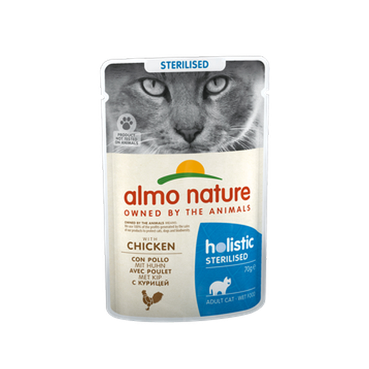 Holistic Sterilized est la meilleure formule adaptée aux besoins des chats castrés, capable de leur fournir tous les nutriments dont ils ont besoin, jour après jour. Les chats castrés ont généralement tendance à prendre du poids en raison d’une activité motrice réduite : on estime que leurs besoins en graisse diminuent jusqu’à 30 % après la stérilisation. Enrichies en vitamines et minéraux, formulées sans colorant alimentaire ni conservateur chimique, les recettes humides Holistic Sterilized procurent naturellement une hydratation et sont idéales pour le contrôle du poids grâce à leur teneur en matières grasses contrôlée.