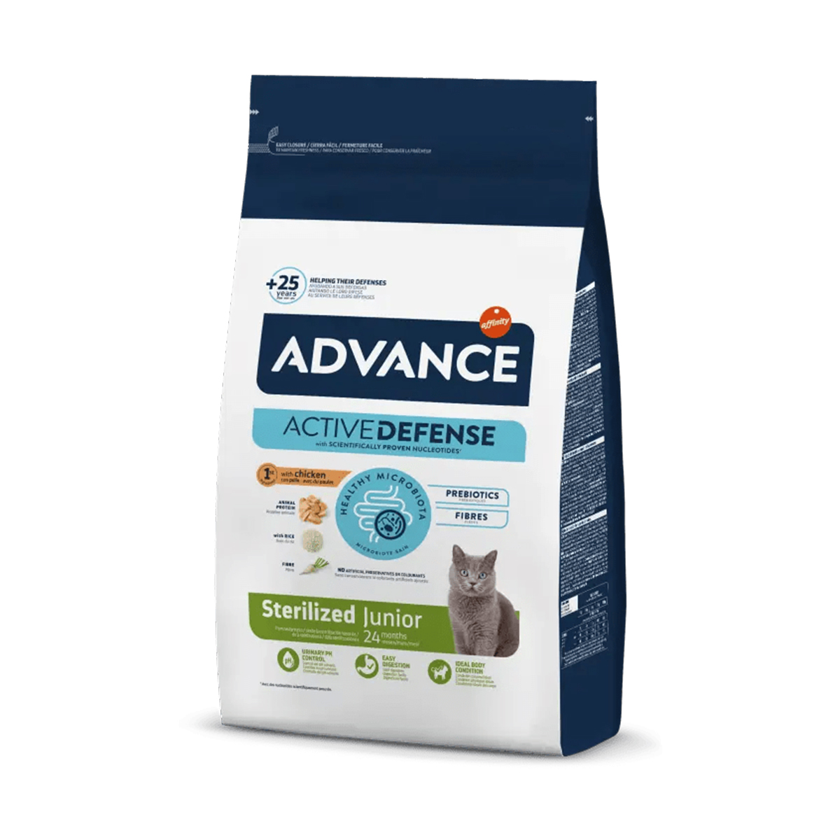 Les Croquettes chat ADVANCE JUNIOR STERILIZED sont des croquettes complètes diététiques pour chatons pour favoriser le bon développement de la musculature, en satisfaisant les besoins en protéines de votre chat avec un apport énergétique modéré nécessaire pour les chats stérilisés. De plus, elles aident à maintenir un pH optimal de l’urine et contribue à préserver une bonne santé intestinale.