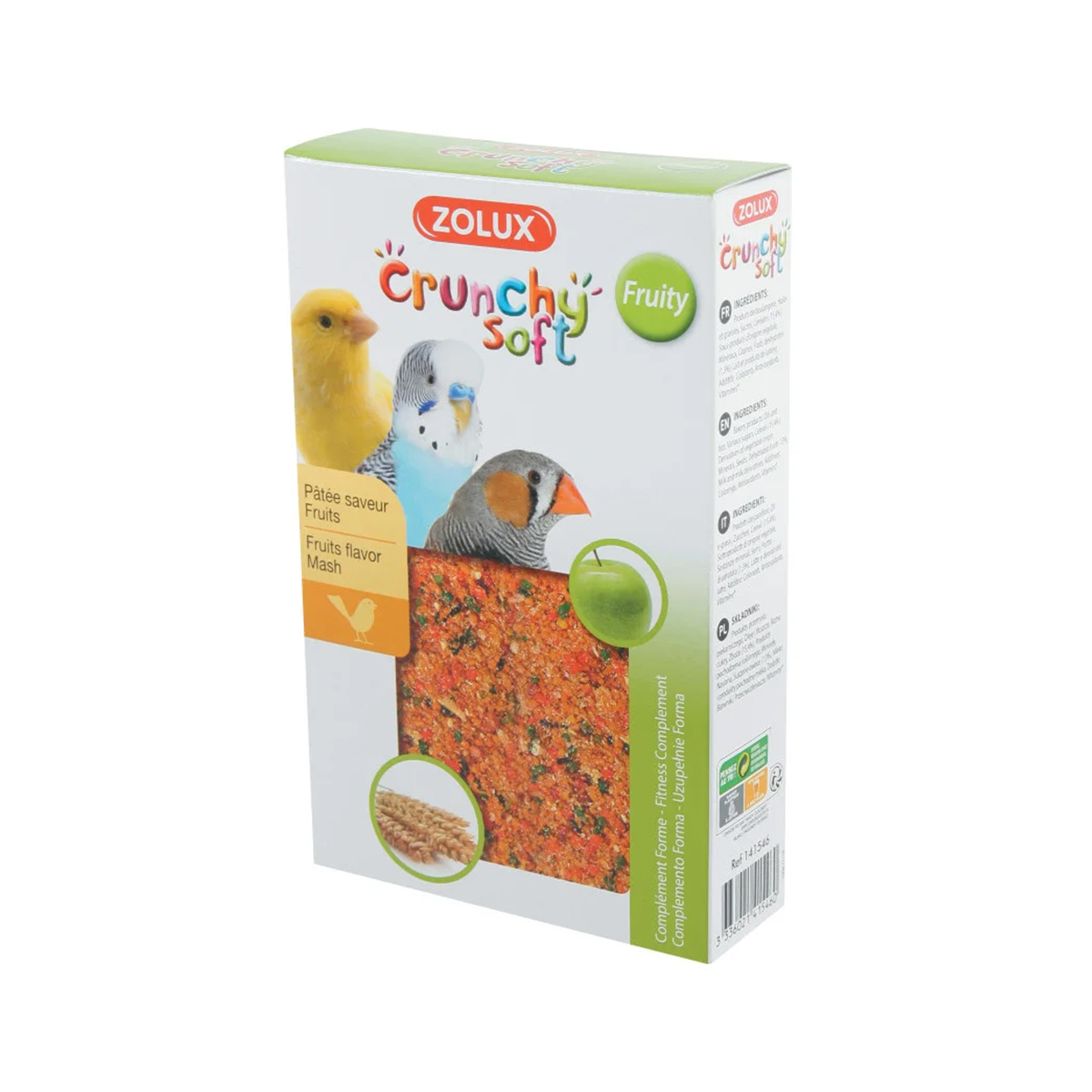 Complément forme aux Fruits, apport énergétique et vitaminé.Les pâtées Crunchy Soft viennent en complément ponctuel de la ration quotidienne de graines.