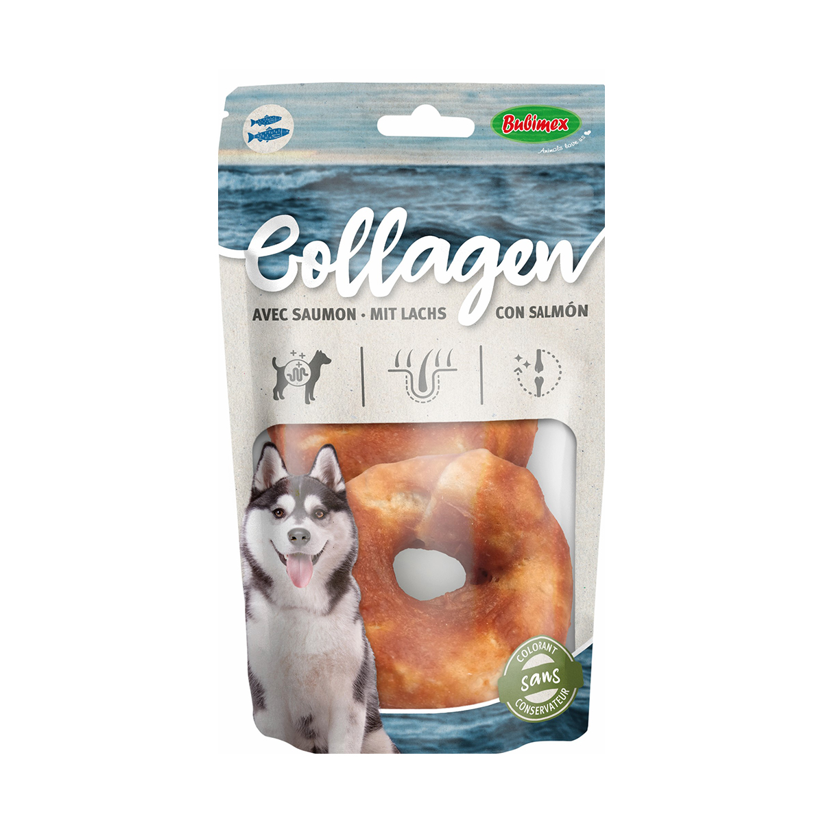 Découvrez la gamme Collagen de Bubimex, des friandises à mâcher riches en protéines et composées à 65% de gélatine de bœuf, source naturelle de collagène. Alternative digeste à la peau de buffle, le collagène est protéine naturelle qui contribue à la santé de la peau, du pelage, des os et peut aider à maintenir la mobilité des articulations.