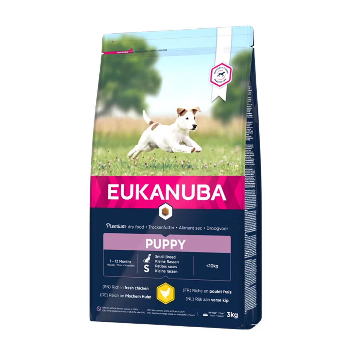 Riches en poulet frais, les croquettes Eukanuba sont idéales pour les chiots de petites races âgés de 1 à 12 mois. Les ingrédients sélectionnés offrent une alimentation parfaitement adaptée à la croissance et au développement de votre chiot. Les croquettes Eukanuba contiennent du DHA pour stimuler l’apprentissage et l’intelligence des chiots, ainsi que du calcium pour le bon développement des os.