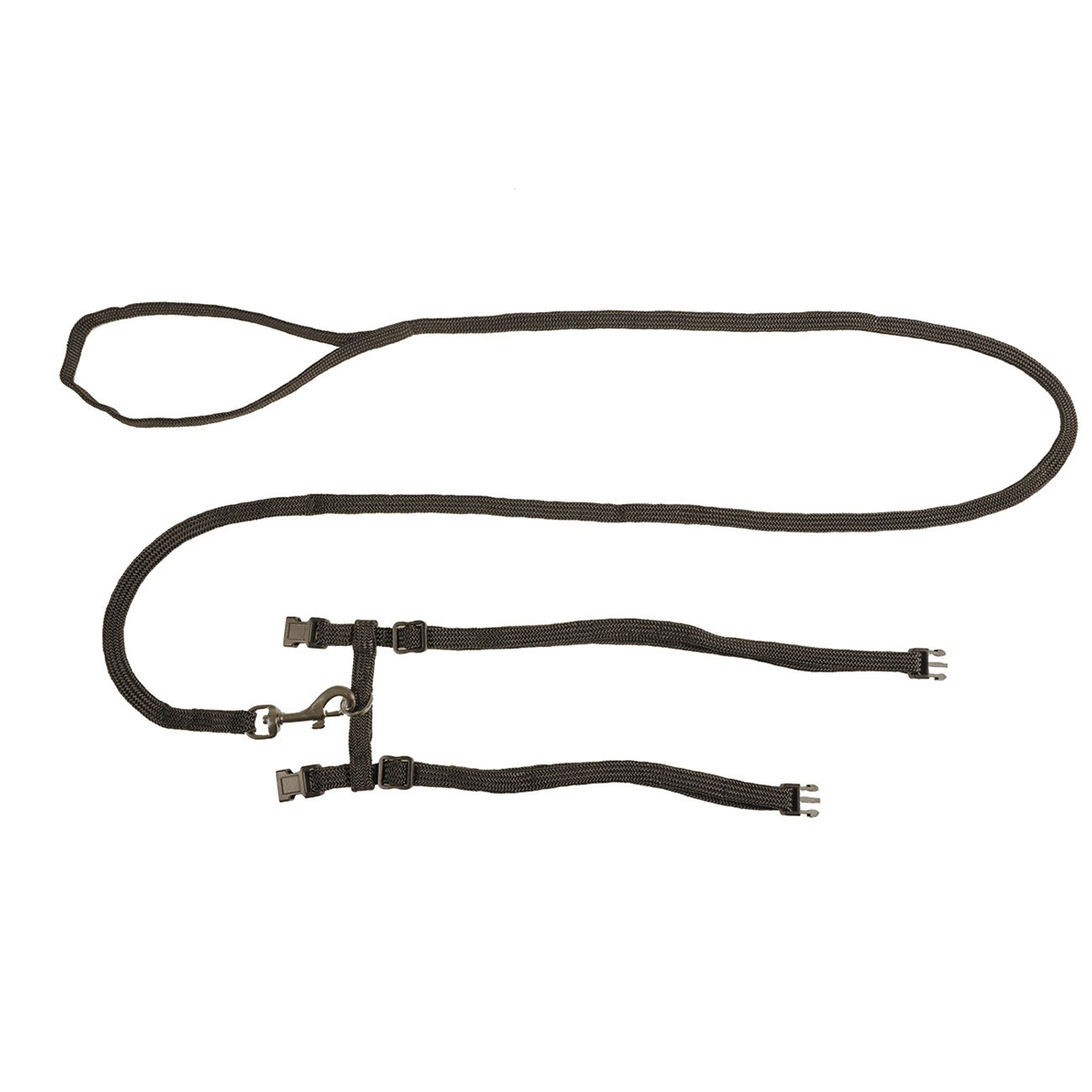 Ce harnais en nylon est solide et entièrement réglable grâce à des boucles.