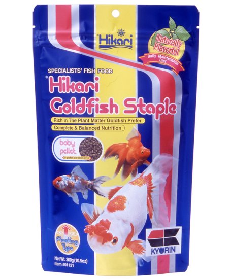 Hikari Goldfish Staple Baby est un mini-granulé que vous pouvez donner tous les jours aux poissons rouges et jeunes koïs. Cette nourriture de base contient une grande quantité de nutriments végétaux dont les poissons rouges raffolent. Vu que les granulés restent à la surface, vous pouvez rapidement constater ce qu’iils mangent, et le restant est facile à éliminer.