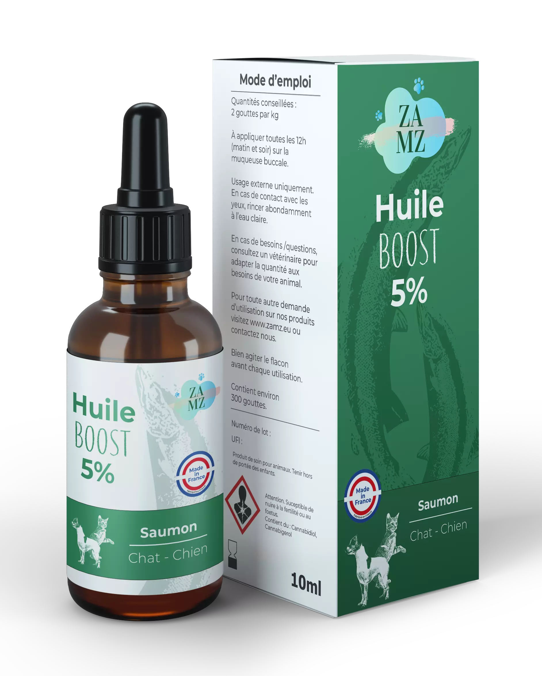 Huile de saumon, extraits de chanvre.