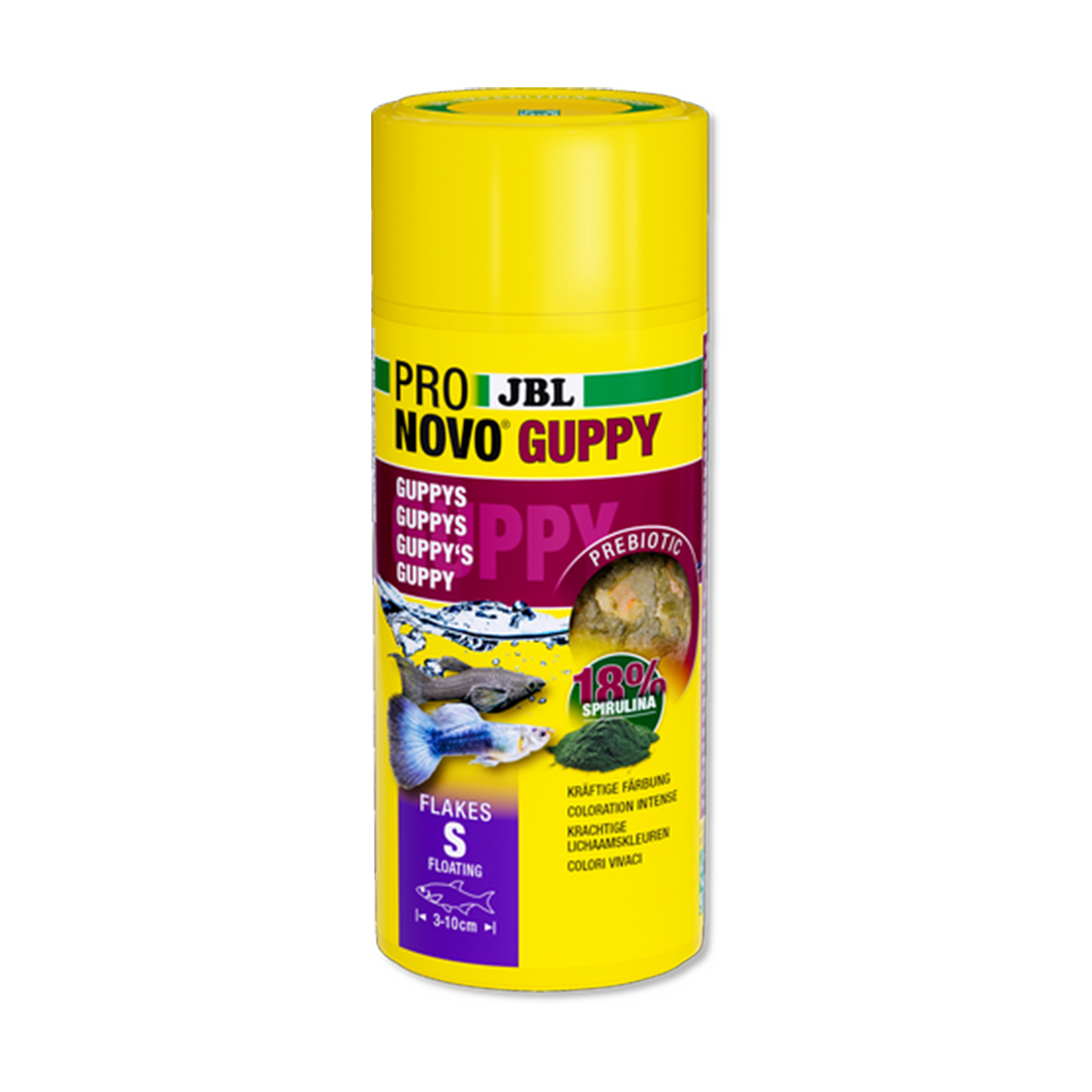 - Contient de l’astaxanthine naturelle de très grande qualité, extraite de krill et de spiruline, qui garantit une coloration parfaite des guppys et autres poissons ovovivipares.