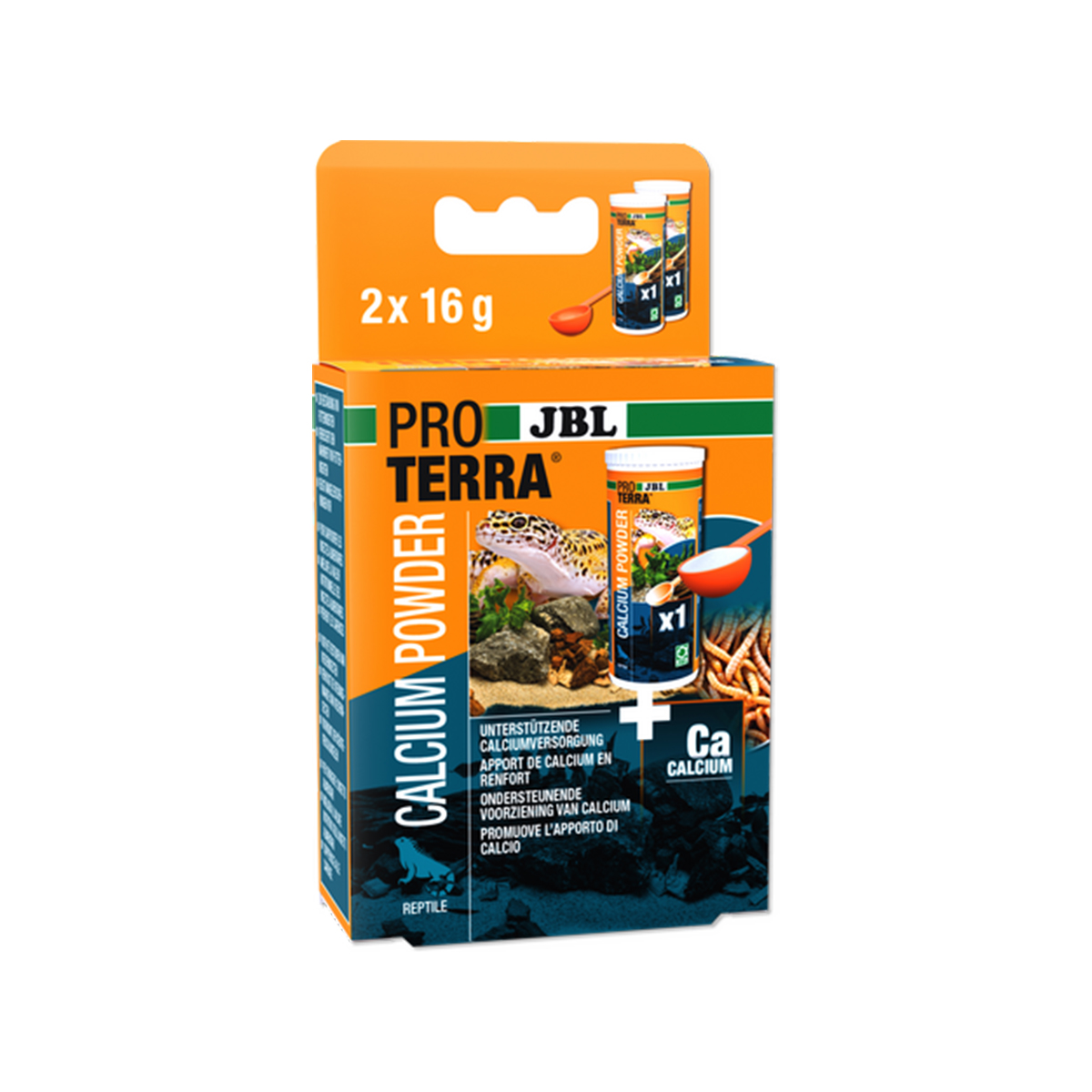 Contenu : 2 x 16 g de poudre de calcium spéciale pour animaux de terrarium