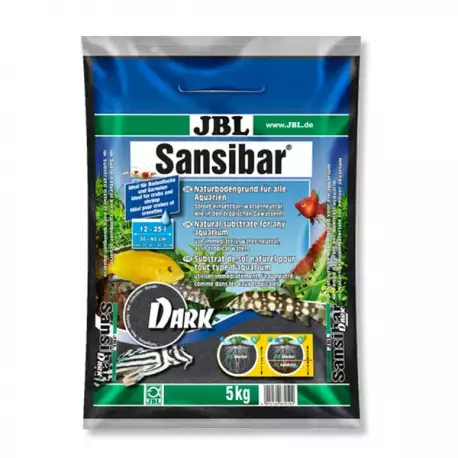 JBL Sansibar DARK est vendu en sac de 5 kg et convient pour un aquarium jusqu’à 40 litres.