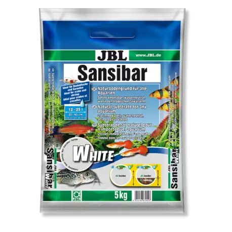 JBL Sansibar WHITE est vendu en sac de 5 kg et convient pour un aquarium jusqu’à 40 litres.