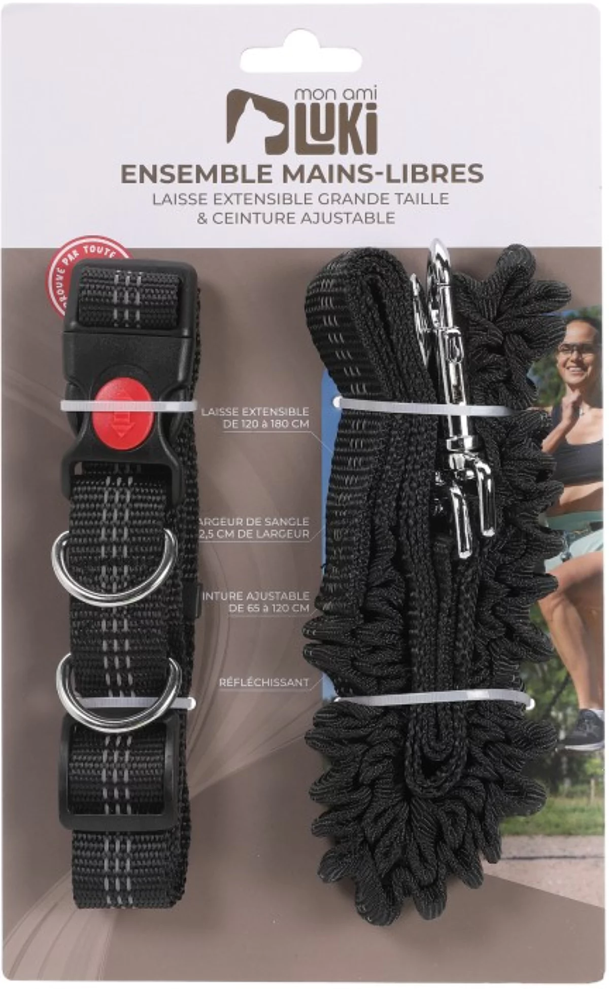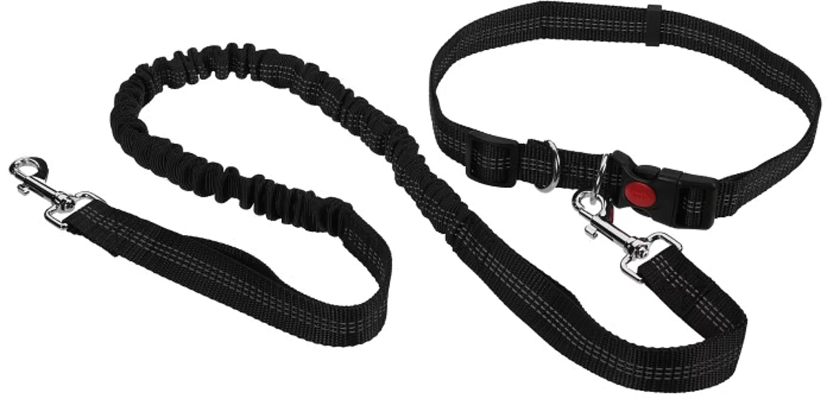 Laisse extensible – ceinture ajustable – NOIR – chien – 120 à 180cm