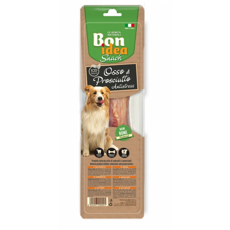 Os de jambon italien de grande qualité. Cette friandise saine et 100% naturelle ravira les papilles de votre animal. Ces os de jambon sont garnis de réels morceaux de viande. Conservés sous vide, ces os restent frais et gardent toute leur saveur. Ces os occuperons votre chien durant un bon moment et lui évitera l’ennuie. La mastication de ces os de jambon permettra à votre chien de travailler les muscles de sa mâchoire ainsi que de nettoyer ses dents et gencives. Comme tout os naturel, il faut surveiller la consommation, l’os n’est pas destiné à être consommer en entier.