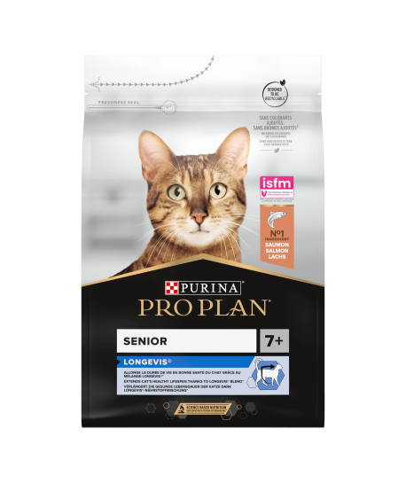 Allonge la durée de vie en bonne santé et améliore la qualité de vie des chats de 7 ans et +, grâce au mélange spécifiquement formulé LONGEVIS®*