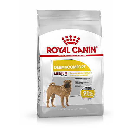 « Aliment complet pour chiens adultes de races moyennes (de 11 à 25 kg) – Plus de 12 mois – Chiens sujets aux irritations et démangeaisons de peau. Peut se donner occasionnellement de 7 à 10 ans. »