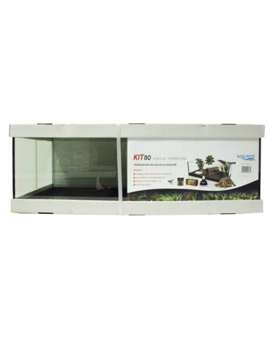 Créez un terrarium beau et confortable pour votre tortue terrestre avec ce kit complet. Ce terrarium de 80 x 35 x 25 cm est équipé contient de la nourriture Komodo Tortoise Fruit & Flower 170g, un sol JBL TerraCoco Humus 600g (9l), une ampoule ultrasun 80w Reptile Planet, et un spot d’éclairage. Décoration non inclue.