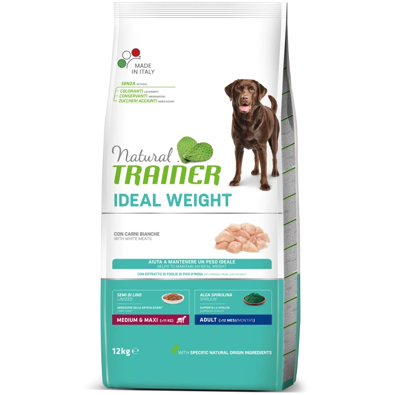 L’emballage peut subir des modifications en raison des mises à jour de la marque. Natural Trainer Adult Medium associe le veau, comme apport de protéines, à l’algue spiruline, comme ingrédient fonctionnel.